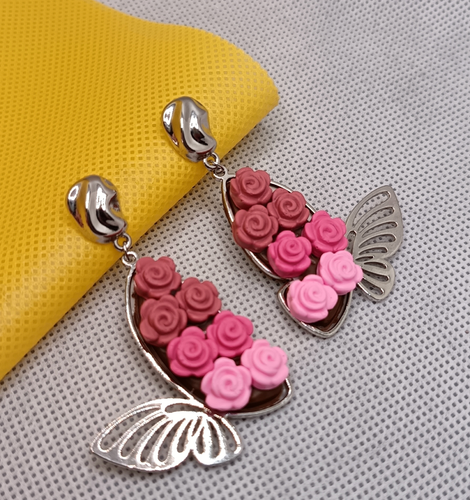 گوشواره باغ شاپرکی صورتی