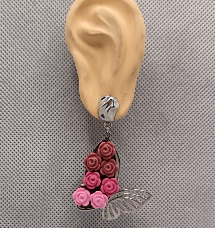 گوشواره باغ شاپرکی صورتی