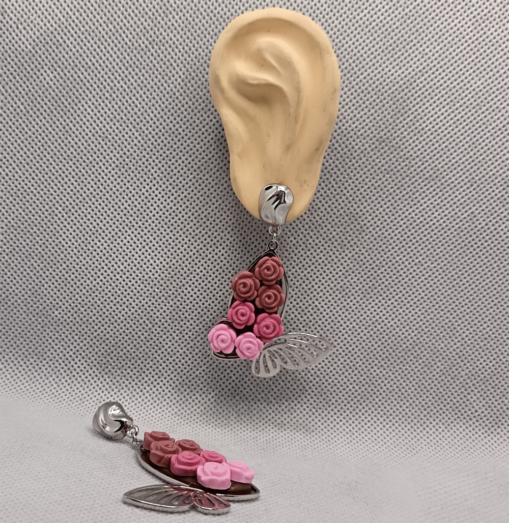 گوشواره باغ شاپرکی صورتی