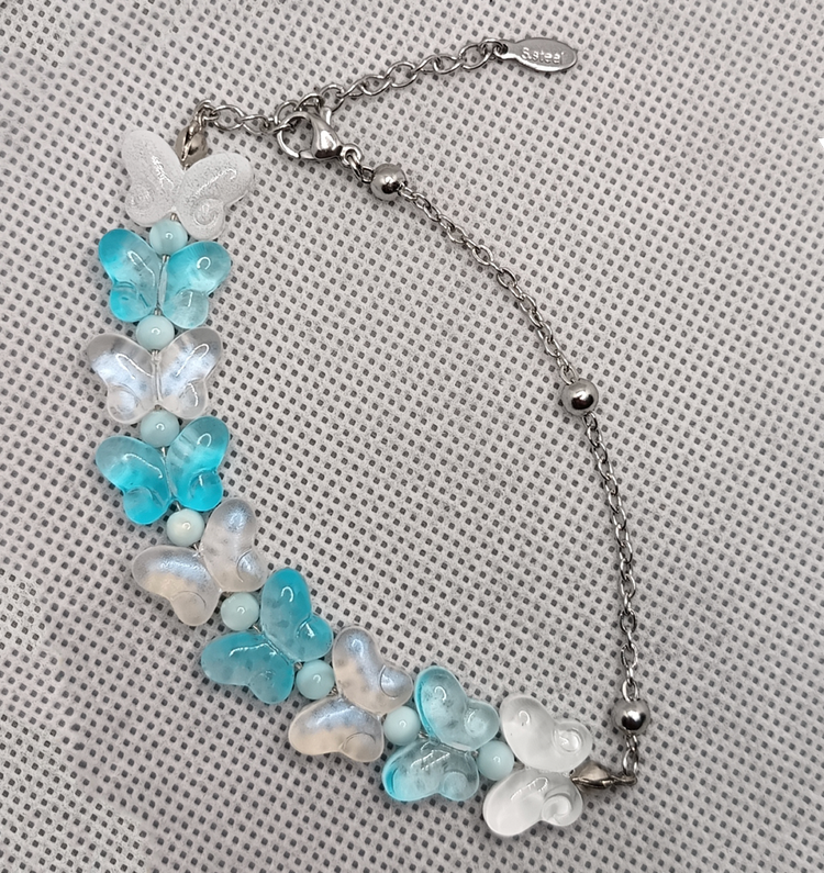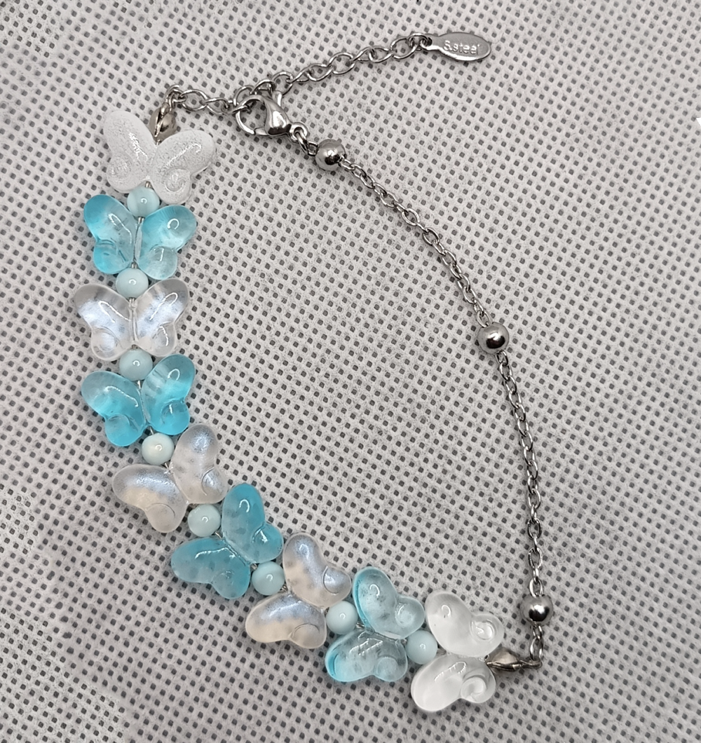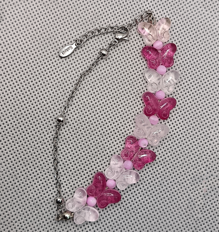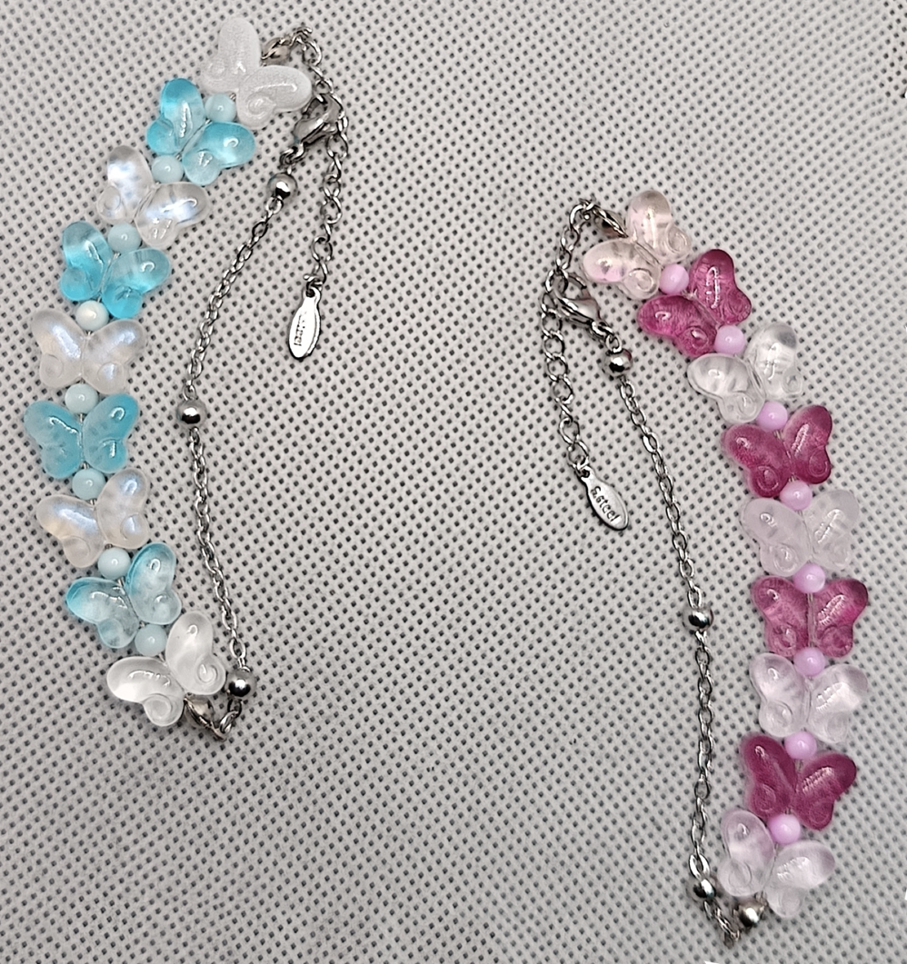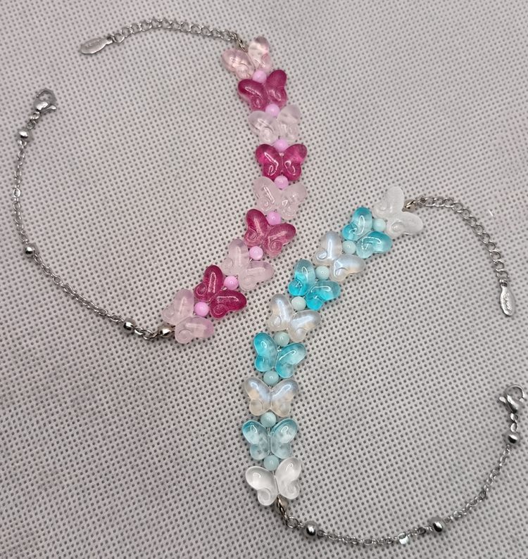 دستبند پروانه شیشه ای و صدف