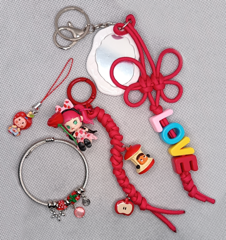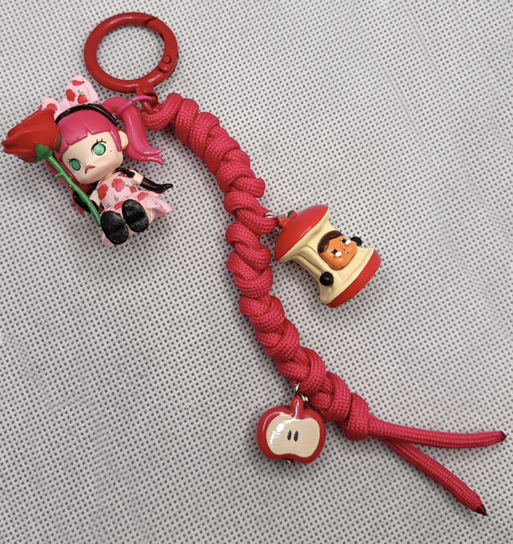۱- بگ چارم پاراکورد با آویز مینی فیگور پاپ مارت، مهره کرای بیبی و سیب