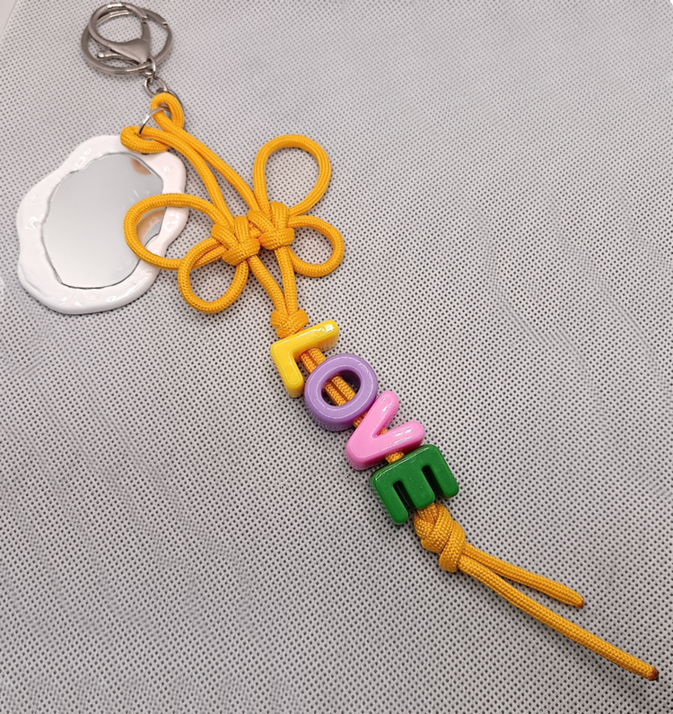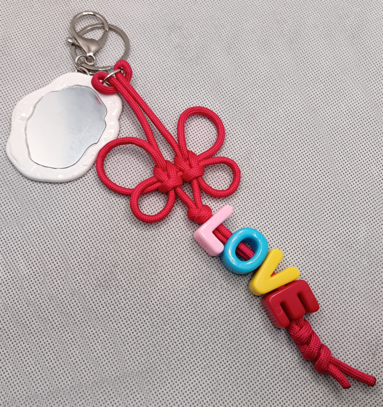 ۲- جاسوییچی و بگ چارم واراکورد با مهره های LOVE و آینه (روی آینه یک روکش ضدخش دارد که قبل از استفاده باید ان را جدا کنید تا تصویر را به درستی نشان دهد)