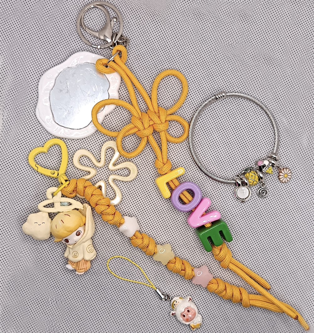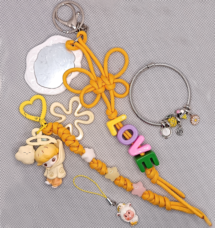 ۱- بگ چارم پاراکورد با آویز مینی فیگور پاپ مارت، مهرههای ستاره و گل هولوگرامی بزرگ